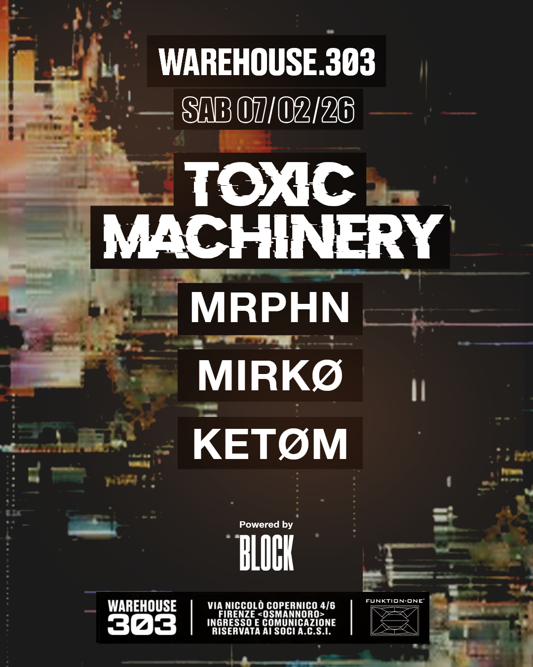 TESSERAMENTOTOXIC MACHINERY debut in Florence with BLOCK hot Sesh 🥵 at WAREHOUSE.3Ø3!